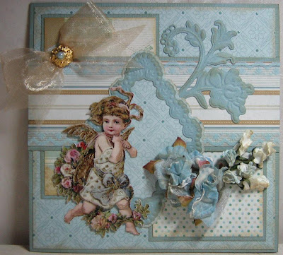 Er staat een vlinder op de stempel en deze heb ik "verborgen"onder een bloem.